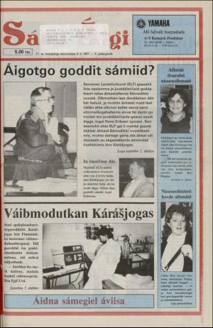 Sami Aigi 08.05.87 er en utgave av publikasjonen Sami Aigi. Utgaven inneholder 12 sider som du kan se nedenfor. PDF filen av utgaven er 17,66 MB. Den forrige utgaven av denne publikasjonen er Sami Aigi 30.04.87. Den neste utgaven av denne publikasjonen er Sami Aigi 15.05.87. Trykk på linken til publikasjonen Sami Aigi for å se informasjon om andre utgaver.