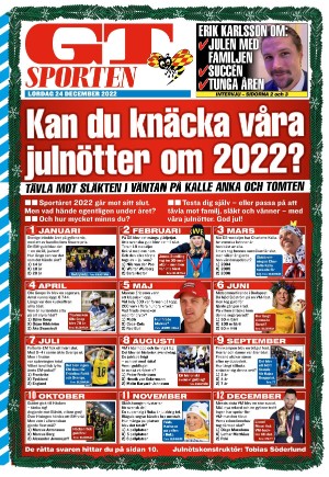GT Bilaga 24.12.22 er en utgave av publikasjonen GT Bilaga. Utgaven inneholder 12 sider som du kan se nedenfor. Utgaven er et bilag til GT 2022-12-24. PDF filen av utgaven er 2,87 MB. Den forrige utgaven av denne publikasjonen er GT Bilaga 2022-12-23. Den neste utgaven av denne publikasjonen er GT Bilaga 2022-12-25. Trykk på linken til publikasjonen GT Bilaga for å se informasjon om andre utgaver.