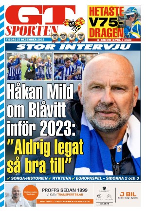 GT Bilaga 27.12.22 er en utgave av publikasjonen GT Bilaga. Utgaven inneholder 16 sider som du kan se nedenfor. Utgaven er et bilag til GT 2022-12-27. PDF filen av utgaven er 3,11 MB. Den forrige utgaven av denne publikasjonen er GT Bilaga 2022-12-25. Den neste utgaven av denne publikasjonen er GT Bilaga 2022-12-28. Trykk på linken til publikasjonen GT Bilaga for å se informasjon om andre utgaver.