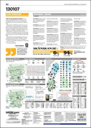 Skånska Dagbladet Malmö & Lund 1/7/13 page 2 is a page in the edition Skånska Dagbladet Malmö & Lund 2013-01-07. The PDF file of the page is 0.00 kB. The previous page in this edition is Skånska Dagbladet Malmö & Lund 2013-01-07 sida 1 . The next page in this edition is Skånska Dagbladet Malmö & Lund 2013-01-07 sida 3. The first and last page of this edition in the archive are respectively Skånska Dagbladet Malmö & Lund 2013-01-07 sida 1 and Skånska Dagbladet Malmö & Lund 2013-01-07 sida 20 .