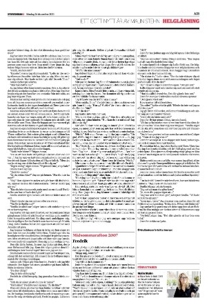 Sydsvenska Dagbladet - Malmø 12/26/21 page 21 is a page in the edition Sydsvenska Dagbladet - Malmø 2021-12-26. The PDF file of the page is 0.00 kB. The previous page in this edition is Sydsvenska Dagbladet - Malmø 2021-12-26 sida 20 . The next page in this edition is Sydsvenska Dagbladet - Malmø 2021-12-26 sida 22. The first and last page of this edition in the archive are respectively Sydsvenska Dagbladet - Malmø 2021-12-26 sida 1 and Sydsvenska Dagbladet - Malmø 2021-12-26 sida 28 .