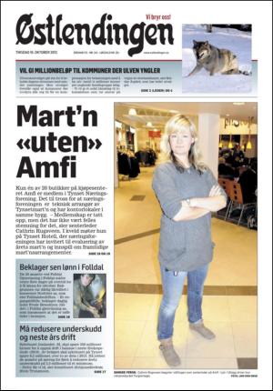 Østlendingen Nord Østerdal 10/16/12 is an edition of the publication Østlendingen Nord Østerdal. The edition contains 5 pages that you can see below. The edition is a supplement to Østlendingen 16.10.12. The PDF file of the edition is 0.69 MB. The previous edition of this publication is Østlendingen Nord Østerdal 15.10.12. The next edition of this publication is Østlendingen Nord Østerdal 17.10.12. Click on the publication's link Østlendingen Nord Østerdal to see information about other editions.