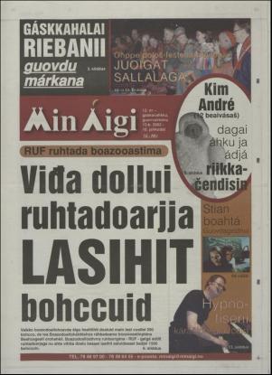 Publikationen Min Aigi är en tidning och publiceras av förlaget Ávvir. Den första och sista utgåvan av denna publikation i arkivet är Min Aigi 22.05.93 respektive Min Aigi 30.01.08.