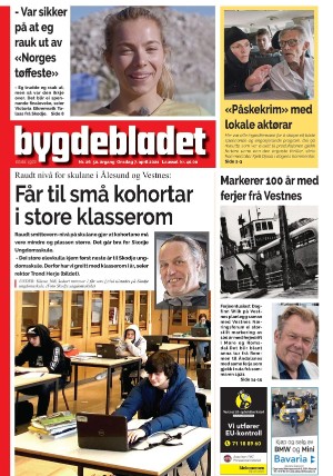 Bygdebladet (Møre og Romsdal) 2021-04-07 är en utgåva av publikationen Bygdebladet (Møre og Romsdal). Utgåvan innehåller 28 sidor som du kan se nedan . PDF filen av utgåvan har storleken 48,47 MB. Den föregående utgåvan av denna publikation är Bygdebladet (Møre og Romsdal) 30.03.21. Nästa utgåva av denna publikation är Bygdebladet (Møre og Romsdal) 09.04.21. Klicka på publikationens länk Bygdebladet (Møre og Romsdal) se information om andra utgåvor.