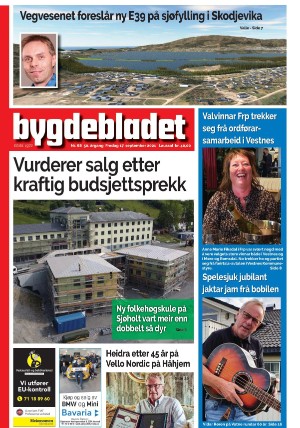 Bygdebladet (Møre og Romsdal) 9/17/21 is an edition of the publication Bygdebladet (Møre og Romsdal). The edition contains 28 pages that you can see below. The PDF file of the edition is 34.12 MB. The previous edition of this publication is Bygdebladet (Møre og Romsdal) 14.09.21. The next edition of this publication is Bygdebladet (Møre og Romsdal) 21.09.21. Click on the publication's link Bygdebladet (Møre og Romsdal) to see information about other editions.