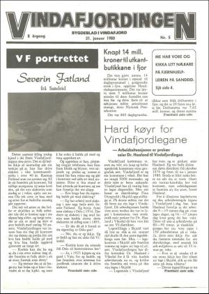 Vindafjordingen 1/31/80 is an edition of the publication Vindafjordingen. The edition contains 8 pages that you can see below. The PDF file of the edition is 3.71 MB. The previous edition of this publication is Vindafjordingen 24.01.80. The next edition of this publication is Vindafjordingen 07.02.80. Click on the publication's link Vindafjordingen to see information about other editions.