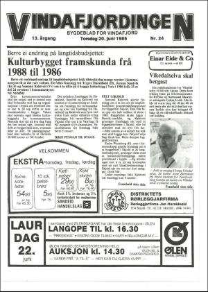 Vindafjordingen 20.06.85 er en utgave av publikasjonen Vindafjordingen. Utgaven inneholder 12 sider som du kan se nedenfor. PDF filen av utgaven er 8,56 MB. Den forrige utgaven av denne publikasjonen er Vindafjordingen 13.06.85. Den neste utgaven av denne publikasjonen er Vindafjordingen 27.06.85. Trykk på linken til publikasjonen Vindafjordingen for å se informasjon om andre utgaver.