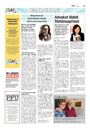 Norge I Dag 05.04.24 er en utgave av publikasjonen Norge I Dag. Utgaven inneholder 24 sider som du kan se nedenfor. Utgaven har 1 bilag som du kan se nedenfor. PDF filen av utgaven er 21,08 MB. Den forrige utgaven av denne publikasjonen er Norge I Dag 22.03.24. Den neste utgaven av denne publikasjonen er Norge I Dag 12.04.24. Trykk på linken til publikasjonen Norge I Dag for å se informasjon om andre utgaver.