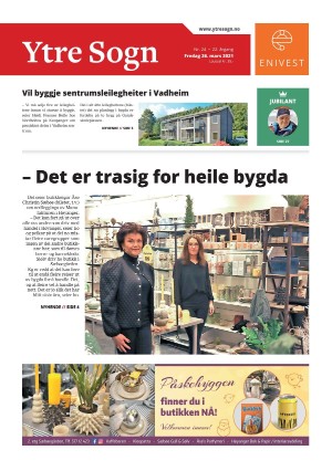 Ytre Sogn 26.03.21 er en utgave av publikasjonen Ytre Sogn. Utgaven inneholder 32 sider som du kan se nedenfor. PDF filen av utgaven er 36,24 MB. Den forrige utgaven av denne publikasjonen er Ytre Sogn 23.03.21. Den neste utgaven av denne publikasjonen er Ytre Sogn 30.03.21. Trykk på linken til publikasjonen Ytre Sogn for å se informasjon om andre utgaver.