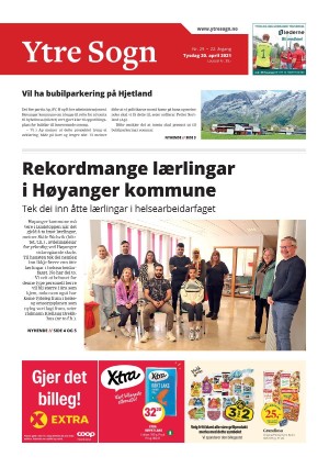 Ytre Sogn 20.04.21 er en utgave av publikasjonen Ytre Sogn. Utgaven inneholder 16 sider som du kan se nedenfor. PDF filen av utgaven er 18,47 MB. Den forrige utgaven av denne publikasjonen er Ytre Sogn 16.04.21. Den neste utgaven av denne publikasjonen er Ytre Sogn 23.04.21. Trykk på linken til publikasjonen Ytre Sogn for å se informasjon om andre utgaver.