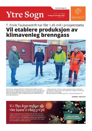 Ytre Sogn 12/24/21 is an edition of the publication Ytre Sogn. The edition contains 24 pages that you can see below. The PDF file of the edition is 37.39 MB. The previous edition of this publication is Ytre Sogn 21.12.21. The next edition of this publication is Ytre Sogn 29.12.21. Click on the publication's link Ytre Sogn to see information about other editions.