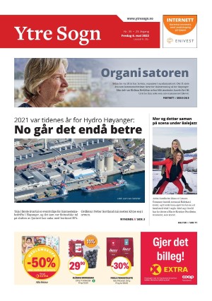 Ytre Sogn 5/6/22 is an edition of the publication Ytre Sogn. The edition contains 20 pages that you can see below. The PDF file of the edition is 22.20 MB. The previous edition of this publication is Ytre Sogn 03.05.22. The next edition of this publication is Ytre Sogn 10.05.22. Click on the publication's link Ytre Sogn to see information about other editions.