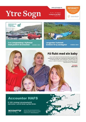Ytre Sogn 7/22/22 is an edition of the publication Ytre Sogn. The edition contains 16 pages that you can see below. The PDF file of the edition is 20.59 MB. The previous edition of this publication is Ytre Sogn 19.07.22. The next edition of this publication is Ytre Sogn 26.07.22. Click on the publication's link Ytre Sogn to see information about other editions.
