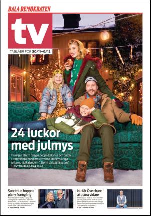 Dala-Demokraten TV 11/29/18 is an edition of the publication Dala-Demokraten TV. The edition contains 8 pages that you can see below. The edition is a supplement to Dala-Demokraten 2018-11-29. The PDF file of the edition is 1.71 MB. The previous edition of this publication is Dala-Demokraten TV 2018-11-22. The next edition of this publication is Dala-Demokraten TV 2018-12-06. Click on the publication's link Dala-Demokraten TV to see information about other editions.