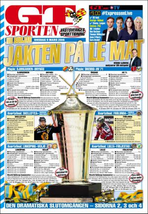 GT Sporten 2016-03-09 är en utgåva av publikationen GT Sporten. Utgåvan innehåller 16 sidor som du kan se nedan . Utgåvan är en bilaga till GT 2016-03-09. PDF filen av utgåvan har storleken 7,19 MB. Den föregående utgåvan av denna publikation är GT Sporten 2016-03-08. Nästa utgåva av denna publikation är GT Sporten 2016-03-10. Klicka på publikationens länk GT Sporten se information om andra utgåvor.