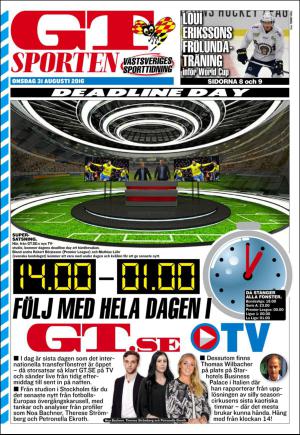 Arkivet till GT innehåller 8979 utgåvor som representerar 251910 sidor. Alla utgåvorna är indexerade i vårat sökbara arkiv. GT Sporten är en bilaga till huvuddelen GT.