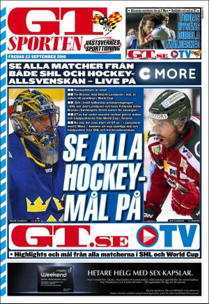 GT Sporten 9/23/16 is an edition of the publication GT Sporten. The edition contains 20 pages that you can see below. The edition is a supplement to GT 2016-09-23. The PDF file of the edition is 5.08 MB. The previous edition of this publication is GT Sporten 2016-09-22. The next edition of this publication is GT Sporten 2016-09-24. Click on the publication's link GT Sporten to see information about other editions.