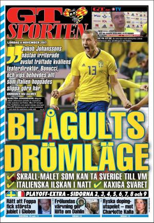 GT Sporten 11/11/17 is an edition of the publication GT Sporten. The edition contains 20 pages that you can see below. The edition is a supplement to GT 2017-11-11. The PDF file of the edition is 4.89 MB. The previous edition of this publication is GT Sporten 2017-11-10. The next edition of this publication is GT Sporten 2017-11-12. Click on the publication's link GT Sporten to see information about other editions.
