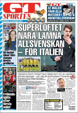 GT Sporten 2018-10-31 är en utgåva av publikationen GT Sporten. Utgåvan innehåller 12 sidor som du kan se nedan . Utgåvan är en bilaga till GT 2018-10-31. PDF filen av utgåvan har storleken 2,74 MB. Den föregående utgåvan av denna publikation är GT Sporten 2018-10-30. Nästa utgåva av denna publikation är GT Sporten 2018-11-01. Klicka på publikationens länk GT Sporten se information om andra utgåvor.