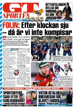 GT Sporten 2021-10-21 är en utgåva av publikationen GT Sporten. Utgåvan innehåller 12 sidor som du kan se nedan . Utgåvan är en bilaga till GT 2021-10-21. PDF filen av utgåvan har storleken 2,51 MB. Den föregående utgåvan av denna publikation är GT Sporten 2021-10-20. Nästa utgåva av denna publikation är GT Sporten 2021-10-22. Klicka på publikationens länk GT Sporten se information om andra utgåvor.