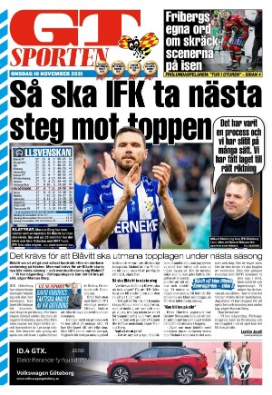 GT Sporten 11/10/21 is an edition of the publication GT Sporten. The edition contains 12 pages that you can see below. The edition is a supplement to GT 2021-11-10. The PDF file of the edition is 2.96 MB. The previous edition of this publication is GT Sporten 2021-11-09. The next edition of this publication is GT Sporten 2021-11-11. Click on the publication's link GT Sporten to see information about other editions.
