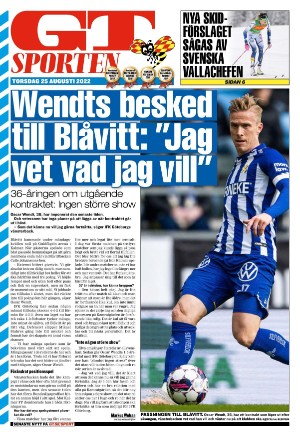 GT Sporten 8/25/22 is an edition of the publication GT Sporten. The edition contains 12 pages that you can see below. The edition is a supplement to GT 2022-08-25. The PDF file of the edition is 3.67 MB. The previous edition of this publication is GT Sporten 2022-08-24. The next edition of this publication is GT Sporten 2022-08-26. Click on the publication's link GT Sporten to see information about other editions.