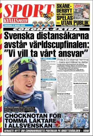 Kvällsposten Sport 3/12/20 is an edition of the publication Kvällsposten Sport. The edition contains 12 pages that you can see below. The edition is a supplement to Kvällsposten 2020-03-12. The PDF file of the edition is 3.05 MB. The previous edition of this publication is Kvällsposten Sport 2020-03-10. The next edition of this publication is Kvällsposten Sport 2020-03-13. Click on the publication's link Kvällsposten Sport to see information about other editions.