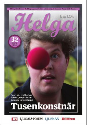 Ljusnan Helga 4/15/16 is an edition of the publication Ljusnan Helga. The edition contains 32 pages that you can see below. The edition is a supplement to Ljusnan 2016-04-15. The PDF file of the edition is 11.93 MB. The previous edition of this publication is Ljusnan Helga 2016-04-08. The next edition of this publication is Ljusnan Helga 2016-04-22. Click on the publication's link Ljusnan Helga to see information about other editions.