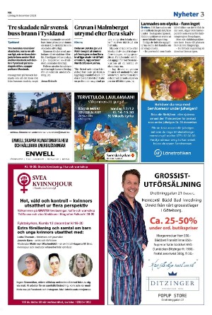 Nerikes Allehanda 12/9/23 is an edition of the publication Nerikes Allehanda. The edition contains 32 pages that you can see below. The edition has 3 supplements that you can href="#pfc-supplements">see below. The PDF file of the edition is 16.03 MB. The previous edition of this publication is Nerikes Allehanda 2023-12-08. The next edition of this publication is Nerikes Allehanda 2023-12-10. Click on the publication's link Nerikes Allehanda to see information about other editions.