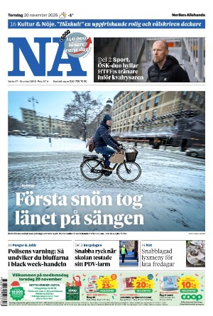 Nerikes Allehanda 20.11.25 er en utgave av publikasjonen Nerikes Allehanda. Utgaven inneholder 20 sider som du kan se nedenfor. Utgaven har 2 bilag som du kan se nedenfor. PDF filen av utgaven er 8,64 MB. Den forrige utgaven av denne publikasjonen er Nerikes Allehanda 2025-11-19. Trykk på linken til publikasjonen Nerikes Allehanda for å se informasjon om andre utgaver.