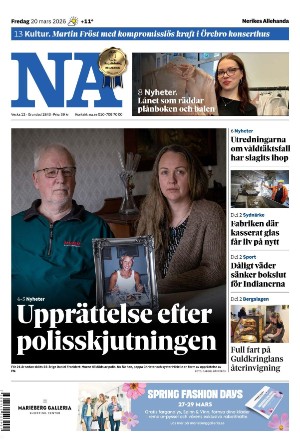 Nerikes Allehanda 20.03.26 er en utgave av publikasjonen Nerikes Allehanda. Utgaven inneholder 20 sider som du kan se nedenfor. Utgaven har 1 bilag som du kan se nedenfor. PDF filen av utgaven er 7,01 MB. Den forrige utgaven av denne publikasjonen er Nerikes Allehanda 2026-03-19. Trykk på linken til publikasjonen Nerikes Allehanda for å se informasjon om andre utgaver.