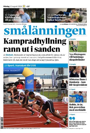 The publication Smålänningen is a newspaper and are published by the publisher Smålänningen. The first and last edition of this publication in the archive is Smålänningen 2021-08-27 respectively Smålänningen 2026-01-19.