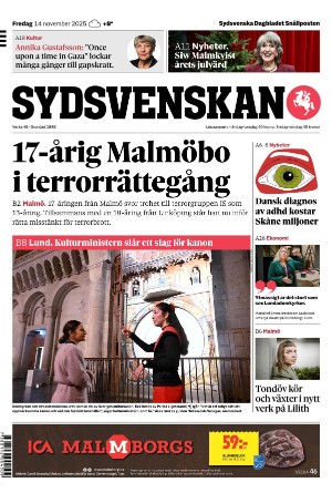 Sydsvenska Dagbladet - Malmø 14.11.25 er en utgave av publikasjonen Sydsvenska Dagbladet - Malmø. Utgaven inneholder 32 sider som du kan se nedenfor. Utgaven har 2 bilag som du kan se nedenfor. PDF filen av utgaven er 10,70 MB. Den forrige utgaven av denne publikasjonen er Sydsvenska Dagbladet - Malmø 2025-11-13. Trykk på linken til publikasjonen Sydsvenska Dagbladet - Malmø for å se informasjon om andre utgaver.
