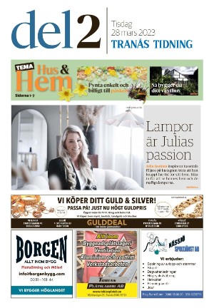 Tranås Tidning Del2 3/28/23 is an edition of the publication Tranås Tidning Del2. The edition contains 24 pages that you can see below. The edition is a supplement to Tranås Tidning 2023-03-28. The PDF file of the edition is 11.72 MB. The previous edition of this publication is Tranås Tidning Del2 2023-03-25. The next edition of this publication is Tranås Tidning Del2 2023-03-30. Click on the publication's link Tranås Tidning Del2 to see information about other editions.