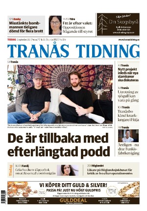 Tranås Tidning 9/12/23 is an edition of the publication Tranås Tidning. The edition contains 20 pages that you can see below. The edition has 1 supplements that you can href="#pfc-supplements">see below. The PDF file of the edition is 8.13 MB. The previous edition of this publication is Tranås Tidning 2023-09-09. The next edition of this publication is Tranås Tidning 2023-09-14. Click on the publication's link Tranås Tidning to see information about other editions.