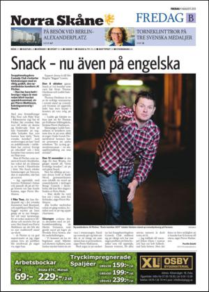 Norra Skåne Section B 09.08.13 er en utgave av publikasjonen Norra Skåne Section B. Utgaven inneholder 24 sider som du kan se nedenfor. Utgaven er et bilag til Norra Skåne 2013-08-09. PDF filen av utgaven er 14,14 MB. Den forrige utgaven av denne publikasjonen er Norra Skåne Section B 2013-08-08. Den neste utgaven av denne publikasjonen er Norra Skåne Section B 2013-08-10. Trykk på linken til publikasjonen Norra Skåne Section B for å se informasjon om andre utgaver.
