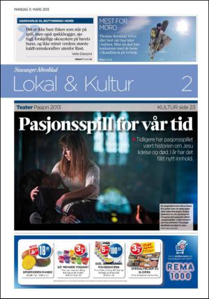 Stavanger Aftenblad Del2 3/11/13 is an edition of the publication Stavanger Aftenblad Del2. The edition contains 32 pages that you can see below. The edition is a supplement to Stavanger Aftenblad 11.03.13. The PDF file of the edition is 6.92 MB. The previous edition of this publication is Stavanger Aftenblad Del2 09.03.13. The next edition of this publication is Stavanger Aftenblad Del2 12.03.13. Click on the publication's link Stavanger Aftenblad Del2 to see information about other editions.