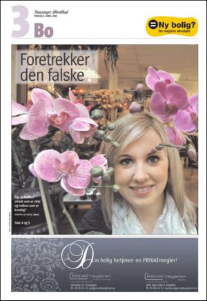 Stavanger Aftenblad Del3 4/8/11 is an edition of the publication Stavanger Aftenblad Del3. The edition contains 52 pages that you can see below. The edition is a supplement to Stavanger Aftenblad 08.04.11. The PDF file of the edition is 14.68 MB. The previous edition of this publication is Stavanger Aftenblad Del3 07.04.11. The next edition of this publication is Stavanger Aftenblad Del3 13.04.11. Click on the publication's link Stavanger Aftenblad Del3 to see information about other editions.