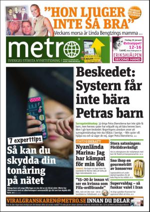 Metro Skåne 2/25/16 is an edition of the publication Metro Skåne. The edition contains 28 pages that you can see below. The previous edition of this publication is Metro Skåne 2016-02-24. The next edition of this publication is Metro Skåne 2016-02-26. Click on the publication's link Metro Skåne to see information about other editions.