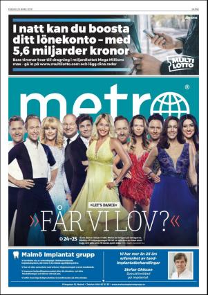 Metro Skåne 23.03.18 er en utgave av publikasjonen Metro Skåne. Utgaven inneholder 36 sider som du kan se nedenfor. Den forrige utgaven av denne publikasjonen er Metro Skåne 2018-03-22. Den neste utgaven av denne publikasjonen er Metro Skåne 2018-03-26. Trykk på linken til publikasjonen Metro Skåne for å se informasjon om andre utgaver.
