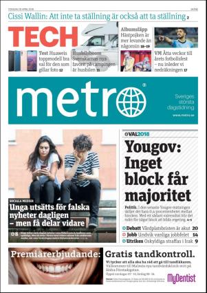 Metro Skåne 4/19/18 is an edition of the publication Metro Skåne. The edition contains 24 pages that you can see below. The previous edition of this publication is Metro Skåne 2018-04-18. The next edition of this publication is Metro Skåne 2018-04-20. Click on the publication's link Metro Skåne to see information about other editions.