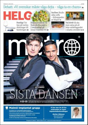 Metro Skåne 2018-06-01 är en utgåva av publikationen Metro Skåne. Utgåvan innehåller 32 sidor som du kan se nedan . Den föregående utgåvan av denna publikation är Metro Skåne 2018-05-31. Nästa utgåva av denna publikation är Metro Skåne 2018-06-04. Klicka på publikationens länk Metro Skåne se information om andra utgåvor.