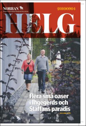 Norran Helg 04.09.10 er en utgave av publikasjonen Norran Helg. Utgaven inneholder 36 sider som du kan se nedenfor. Utgaven er et bilag til Norran 2010-09-04. PDF filen av utgaven er 15,03 MB. Den forrige utgaven av denne publikasjonen er Norran Helg 2010-08-28. Den neste utgaven av denne publikasjonen er Norran Helg 2010-09-11. Trykk på linken til publikasjonen Norran Helg for å se informasjon om andre utgaver.