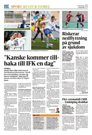Norrköpings Tidningar Sektion B 1/5/22 is an edition of the publication Norrköpings Tidningar Sektion B. The edition contains 24 pages that you can see below. The edition is a supplement to Norrköpings Tidningar 2022-01-05. The PDF file of the edition is 20.22 MB. The previous edition of this publication is Norrköpings Tidningar Sektion B 2022-01-04. The next edition of this publication is Norrköpings Tidningar Sektion B 2022-01-07. Click on the publication's link Norrköpings Tidningar Sektion B to see information about other editions.