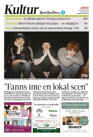Upsala Nya Tidning Sektion B 21.02.26 er en utgave av publikasjonen Upsala Nya Tidning Sektion B. Utgaven inneholder 34 sider som du kan se nedenfor. Utgaven er et bilag til Upsala Nya Tidning 2026-02-21. PDF filen av utgaven er 23,54 MB. Den forrige utgaven av denne publikasjonen er Upsala Nya Tidning Sektion B 2026-02-20. Trykk på linken til publikasjonen Upsala Nya Tidning Sektion B for å se informasjon om andre utgaver.