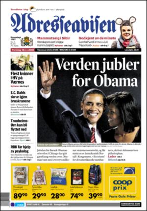 Adresseavisen 11/6/08 is an edition of the publication Adresseavisen. The edition contains 48 pages that you can see below. The edition has 2 supplements that you can href="#pfc-supplements">see below. The PDF file of the edition is 12.99 MB. The previous edition of this publication is Adresseavisen 11/5/08. The next edition of this publication is Adresseavisen 11/7/08. Click on the publication's link Adresseavisen to see information about other editions.