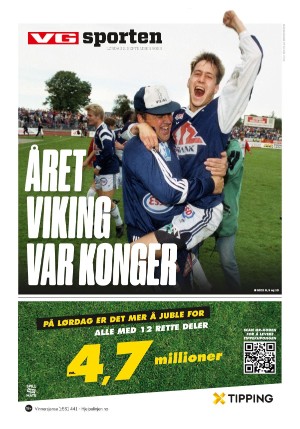 VG Sporten 9/2/23 is an edition of the publication VG Sporten. The edition contains 12 pages that you can see below. The edition is a supplement to VG 02.09.23. The PDF file of the edition is 11.51 MB. The previous edition of this publication is VG Sporten 01.09.23. The next edition of this publication is VG Sporten 04.09.23. Click on the publication's link VG Sporten to see information about other editions.
