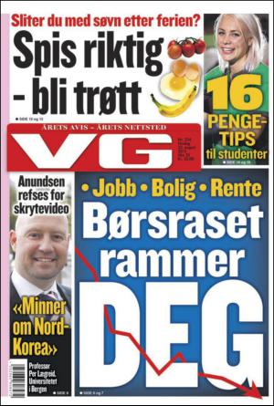 VG 2015-08-25 är en utgåva av publikationen VG. Utgåvan innehåller 36 sidor som du kan se nedan . Utgåvan har 1 bilagor som du kan href = "#pfc-supplements">se nedan. PDF filen av utgåvan har storleken 7,58 MB. Den föregående utgåvan av denna publikation är VG 24.08.15. Nästa utgåva av denna publikation är VG 26.08.15. Klicka på publikationens länk VG se information om andra utgåvor.