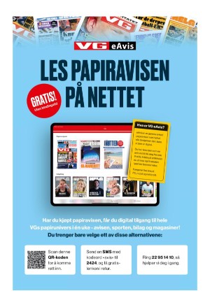 VG 06.08.24 er en utgave av publikasjonen VG. Utgaven inneholder 36 sider som du kan se nedenfor. Utgaven har 1 bilag som du kan se nedenfor. PDF filen av utgaven er 0,00 MB. Den forrige utgaven av denne publikasjonen er VG 05.08.24. Den neste utgaven av denne publikasjonen er VG 07.08.24. Trykk på linken til publikasjonen VG for å se informasjon om andre utgaver.