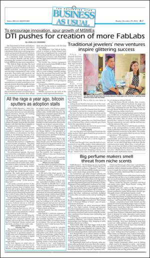 The Philippine Star Business section 2014-12-29 är en utgåva av publikationen The Philippine Star Business section. Utgåvan innehåller 14 sidor som du kan se nedan . Utgåvan är en bilaga till The Philippine Star 12/29/14. PDF filen av utgåvan har storleken 17,36 MB. Den föregående utgåvan av denna publikation är The Philippine Star Business section 12/28/14. Nästa utgåva av denna publikation är The Philippine Star Business section 12/30/14. Klicka på publikationens länk The Philippine Star Business section se information om andra utgåvor.